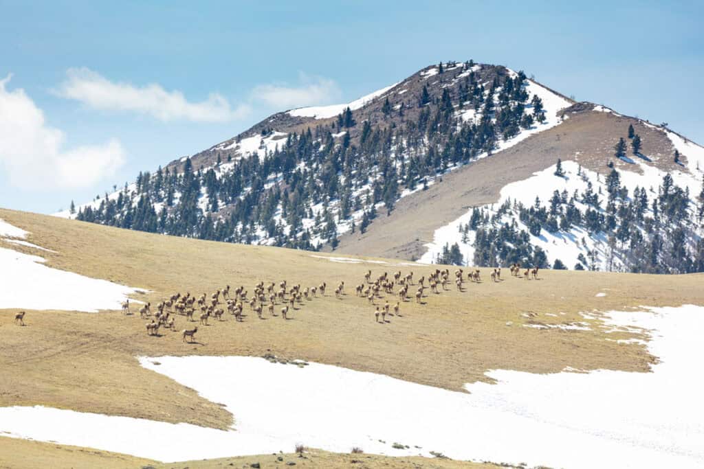 Neither can be turned back. And here, in what Kinkie calls “the hot zone,” hundreds of elk show up on the same ground, at the same time, where her cattle are calving. It’s a spot, vital to their beef operation, where cattle are fed before being turned out onto summer pasture in the mountains of the nearby Custer-Gallatin National Forest.