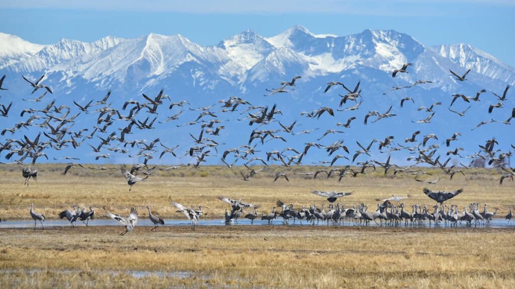 Nestled between the San Juan and Sangre de Cristo mountain ranges, San Luis Valley is known for potato, alfalfa, and other vegetable crop production. Half a million acres in the valley are irrigated, often by drawing groundwater from the valley’s two major aquifers. This irrigated farmland drives the majority of the region’s economic activity and creates food sources and habitat for migrating birds and other wildlife.