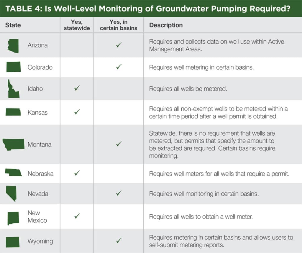 Note: Some states, such as Idaho, require individual well metering but, due to time constraints, have not yet fully implemented well metering programs.