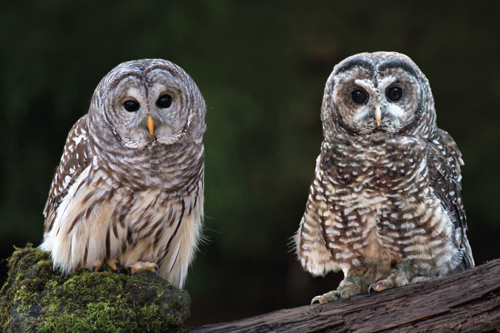 Spotted owls rely on old-growth coniferous forests for habitat, a reality that sparked the “timber wars” of the 1980s and early ‘90s that pitted environmentalists against Washington’s timber industry. By 1990, the spotted owl was listed as a threatened species under the Endangered Species Act, a designation that restricted logging and other activities that could disrupt the owl’s habitat. Despite environmentalists largely winning the owl wars and significantly reducing timbering in the region, spotted owl populations have continued to decline dramatically. Something else was encroaching on their habitat—the barred owl.