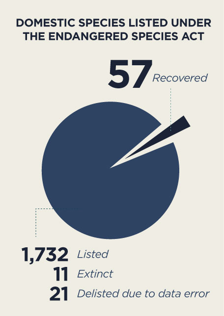 The department should aim to drastically improve the recovery rate of endangered species long term. As a starting point, the following reforms can help triple the rate of recovery to 10 percent, which would mean roughly 120 additional species achieve recovery.