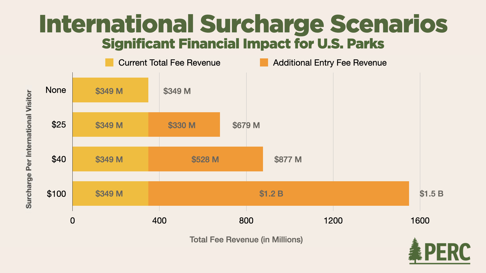 PERC has explored a number of ways to effectively implement a surcharge that would raise significant revenue to support the parks without deterring visitation. The below model outlines a possible revenue projection from PERC’s latest research: