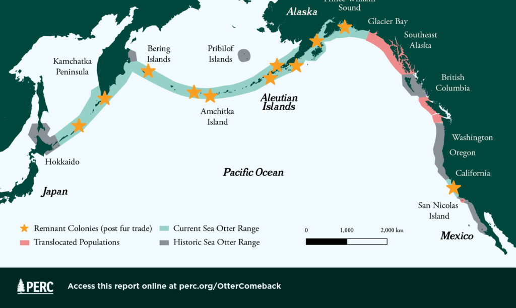 There is ecological justification for reintroducing sea otters, and sites with suitable habitat, but history has shown that such efforts can be derailed by poorly designed policies that create clear winners and losers with no mitigation or compensation for the latter. Past reintroduction plans opposed by affected communities have generated deep and broad opposition and ill will that ultimately harmed the conservation prospects of reintroduced species. For instance, controversial proposals to reintroduce grizzly bears in the Bitterroot and North Cascades Ecosystems have stalled largely due to political backlash stemming from perceived inequities in the distribution of costs and benefits.12Hunter Sapienza and Ya-Wei Li, “Reintroduction: An Assessment of Endangered Species Act Experimental Populations,” Environmental Policy Innovation Center (2021); John Stang, “Why the US Plan to Reintroduce Grizzlies to the North Cascades Has Stalled,” Cascade PBS, May 2, 2025. To avoid repeating past mistakes, any sea otter reintroduction must be cooperatively and creatively designed to reduce liability for affected groups, and ideally, to increase and equitably distribute the benefits.