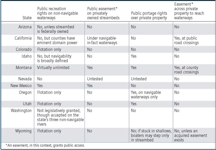 High Country News reports on stream access laws in the West and provides the updated chart below, which originally appeared in PERC Reports:
