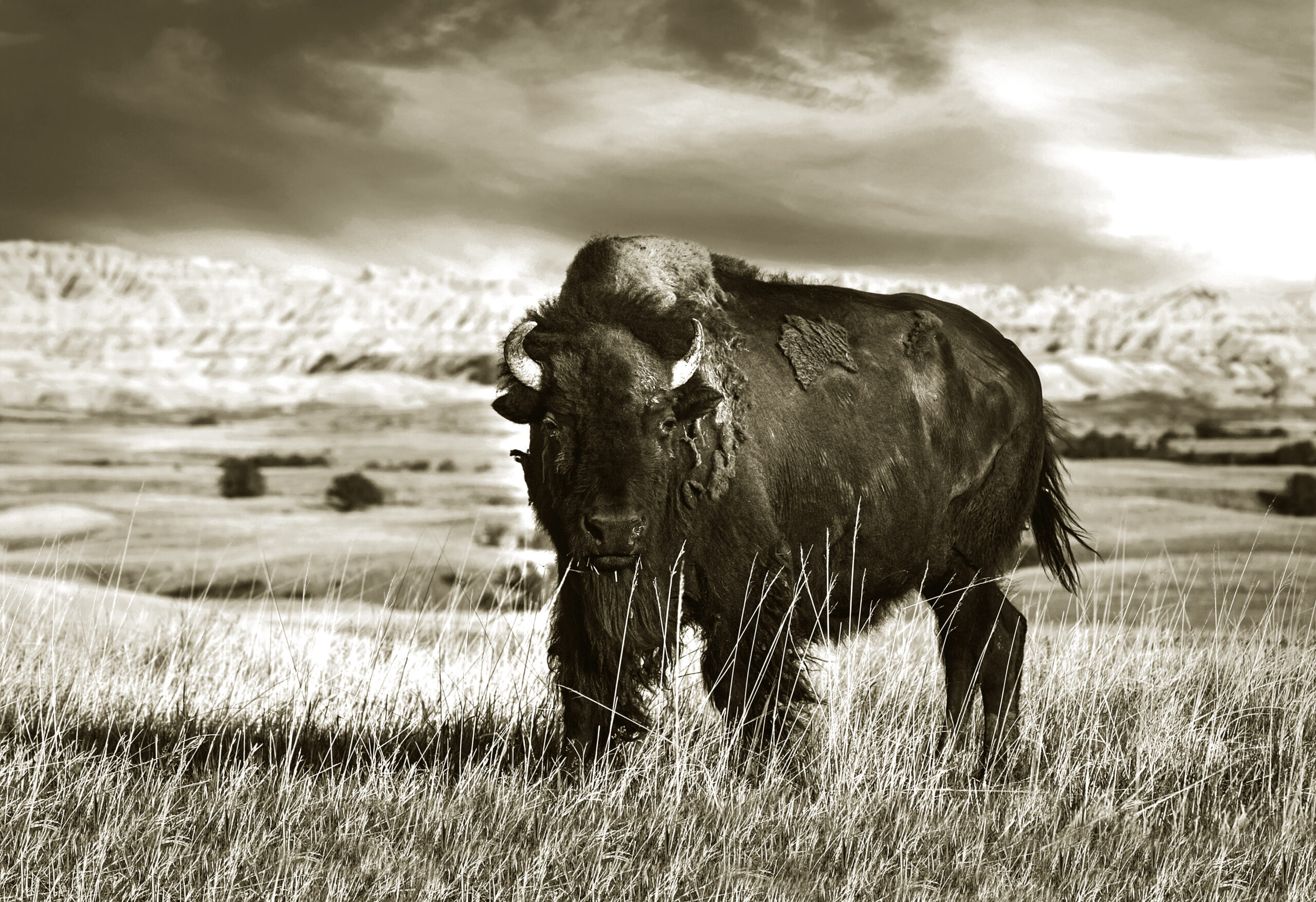 The Badlandsâwhere sediment deposits have been eroded by wind and water over millions of yearsâare an ideal setting for buffaloes to make a comeback. Less suitable for agricultural development than other parts of the Great Plains, the federal Resettlement Administration started buying up ranches and farms in 1934 that failed during the Dust Bowl. The government ultimately bought more than 10 million acres; nearly 600,000 of them became the Buffalo Gap National Grasslands, west of the Pine Ridge Indian Reservation and the national park.