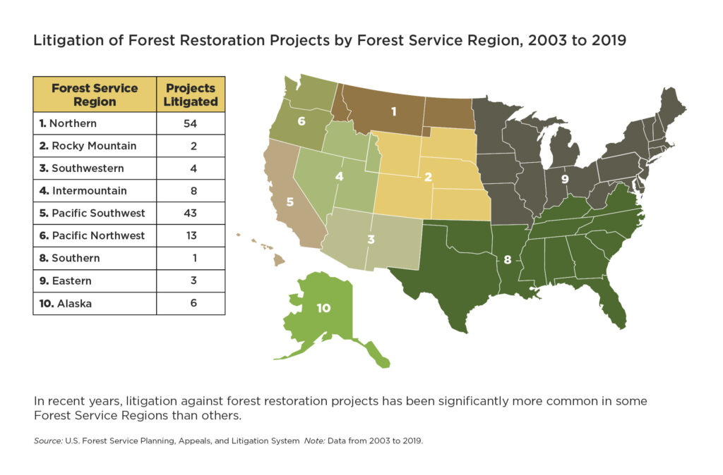 Disruptive litigation adds expense, delays and uncertainty for forest managers, and these consequences are not evenly distributed. For some Forest Service regions or national forest units, litigation is only an infrequent obstacle. Yet for others, it is an ever-present consideration. Litigation is a particularly disruptive factor for national forests within the Ninth Circuit Court of Appeals—which has jurisdiction over Montana, Idaho, Nevada and other western states—and near communities with litigious local or special interest groups.