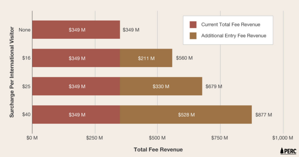 If each international visitor to a U.S. national park paid a $25 surcharge, it could raise an estimated $330 million, nearly doubling total recreation fee revenue for the park system.